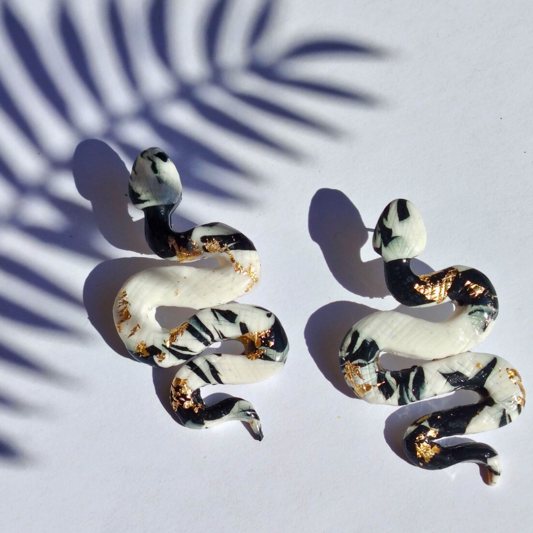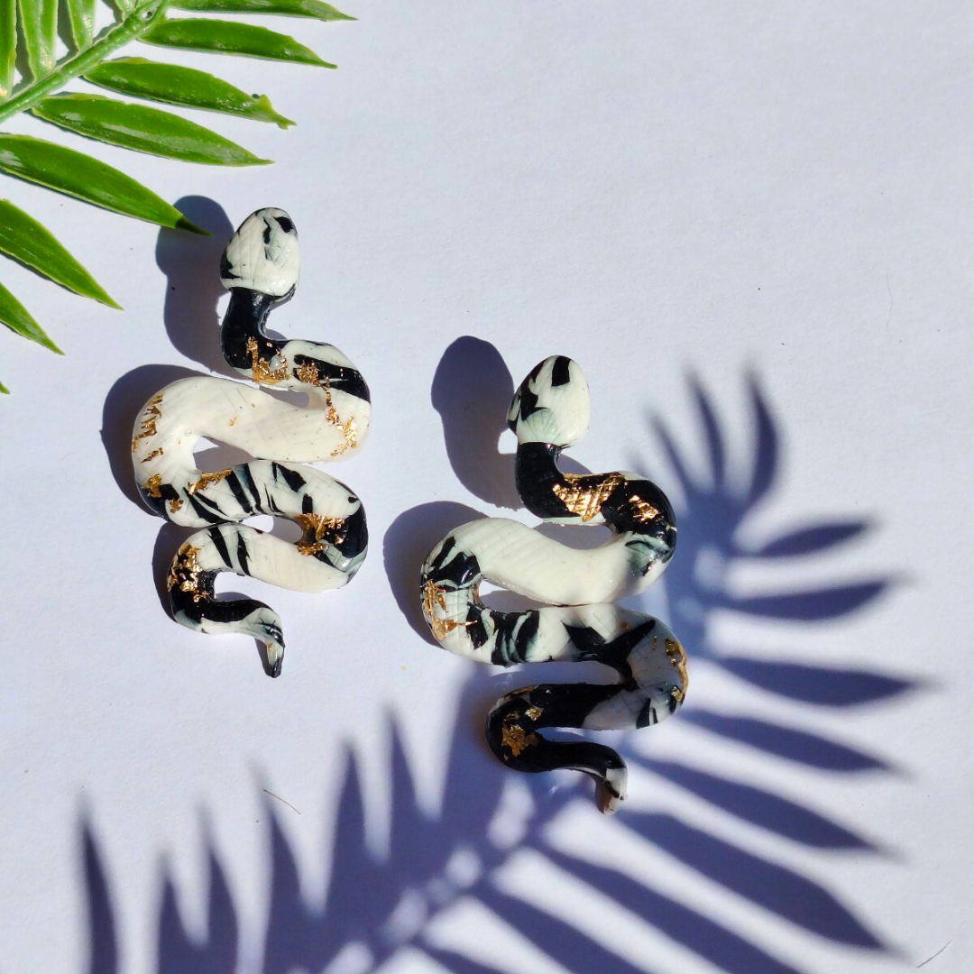 Naušnice zmija od polimerne gline – crno-bijeli dizajn / Black & White Snake