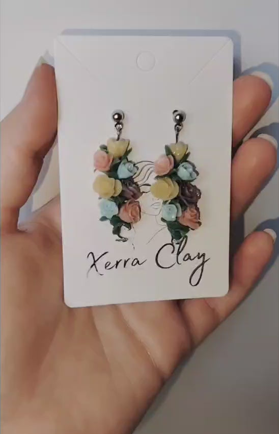 Šest šarenih ružica u obliku visećih naušnica. Ženstvene, umjetničke i bezvremenski profinjene.