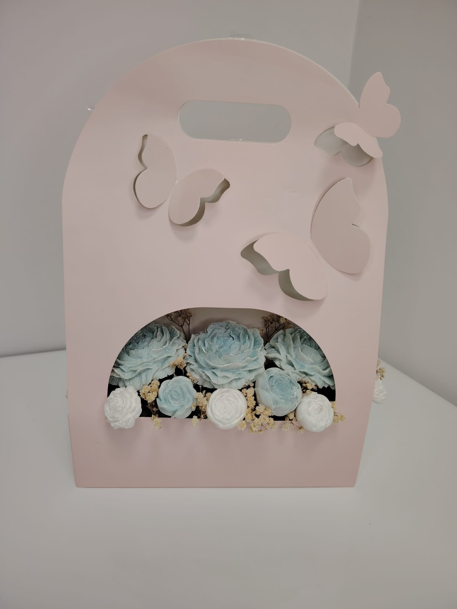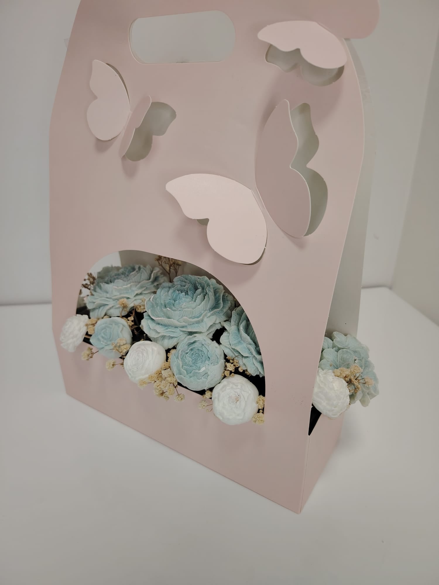 Elegantni buket od svijeća u obliku cvijeća u različitim bojama.