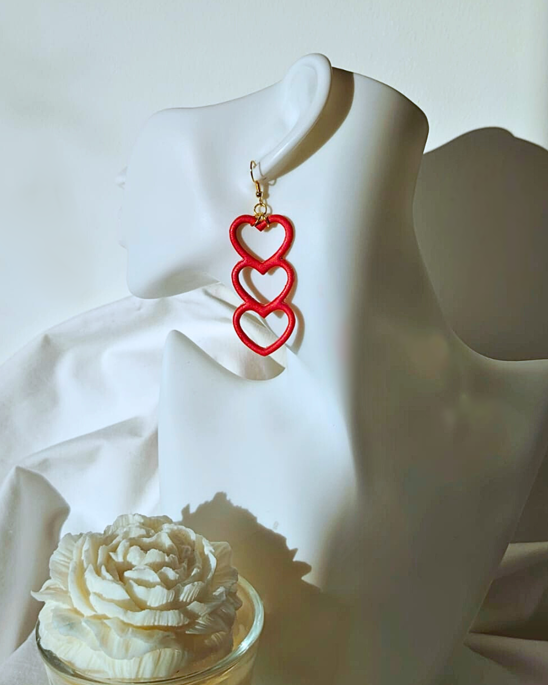 The earrings are made from polymer clay, a lightweight and durable material shaped by hand and oven-baked for longevity. Shiny parts are coated with UV resin for extra shine and protection, while matte finishes use a clay-specific coating.