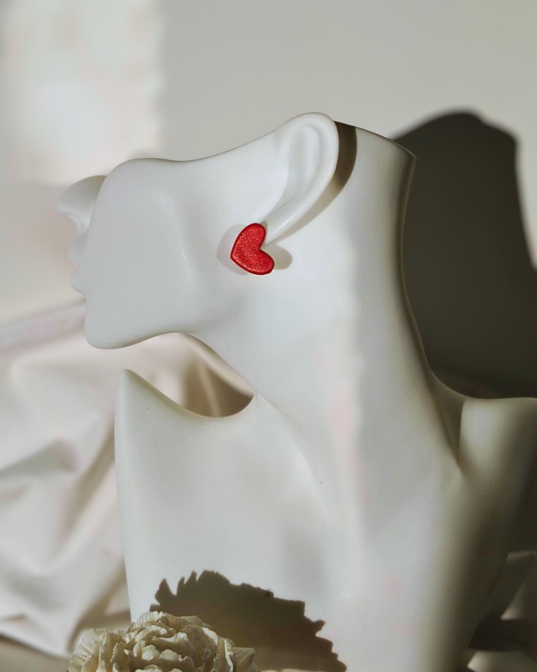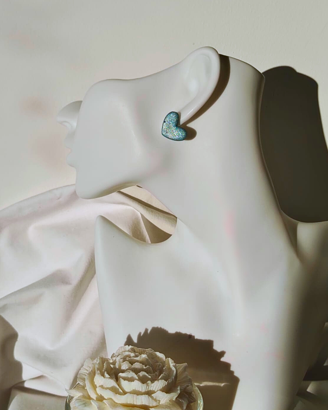 The earrings are made from polymer clay, a lightweight and durable material shaped by hand and oven-baked for longevity. Shiny parts are coated with UV resin for extra shine and protection, while matte finishes use a clay-specific coating.
