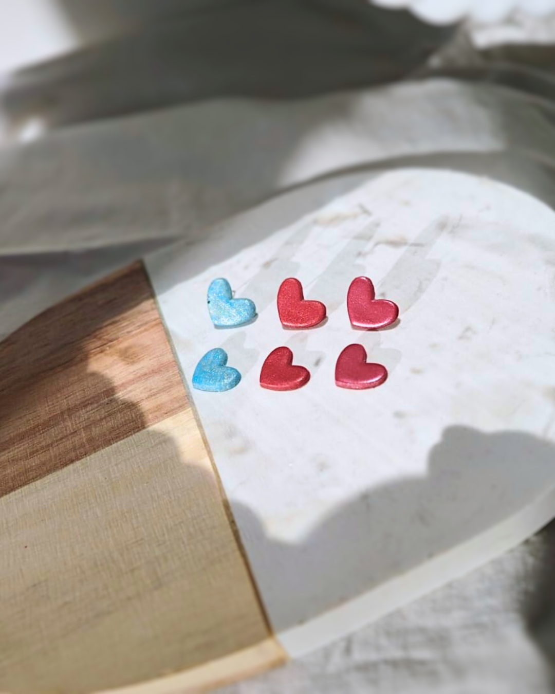 Naušnice od polimer gline u obliku srca- Crvene, plave i roze boje.