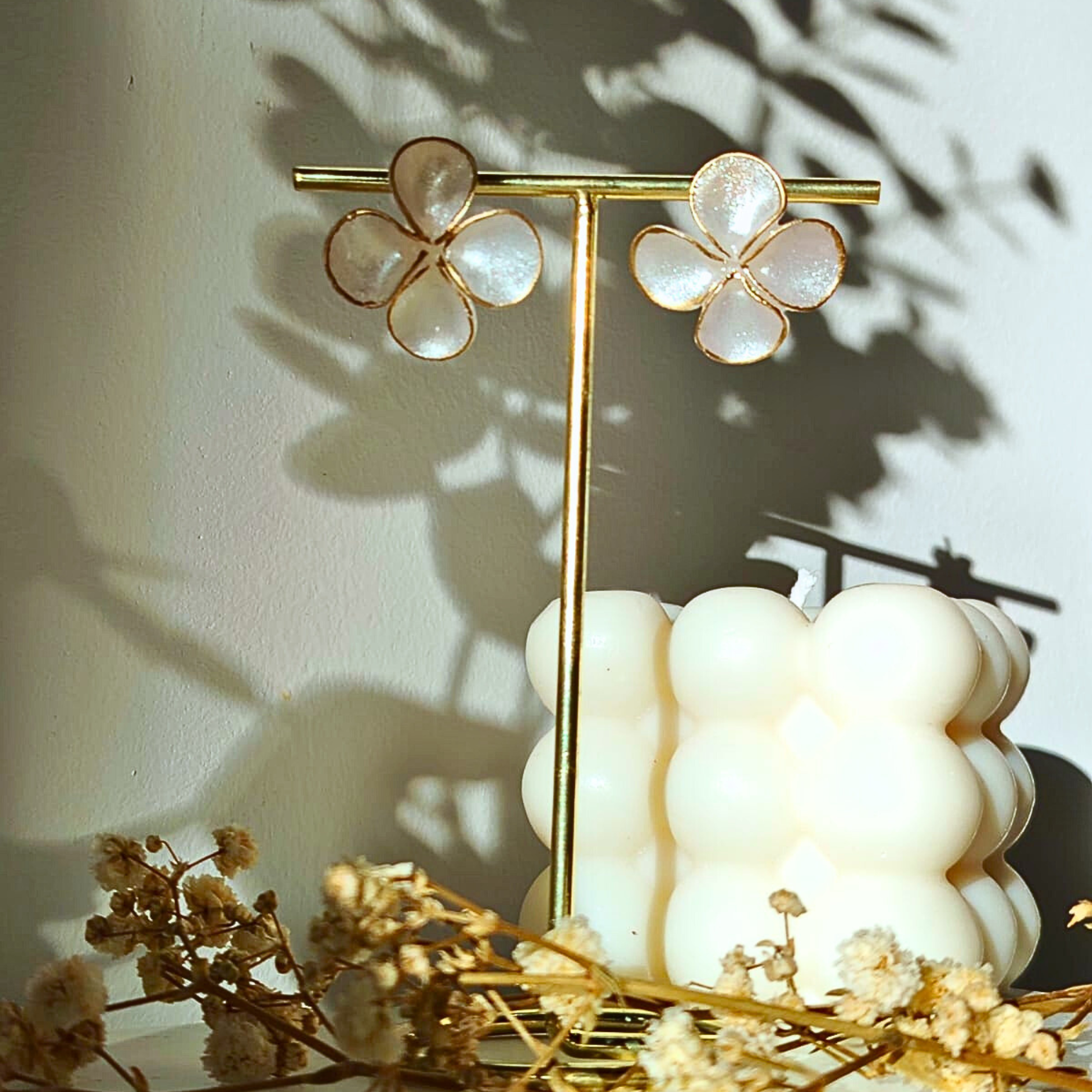 Nježne naušnice u obliku bijelog cvijeta koje odišu elegancijom i minimalizmom. Ručno izrađene od polimerne gline, lagane i savršene za svaki dan ili posebnu priliku.